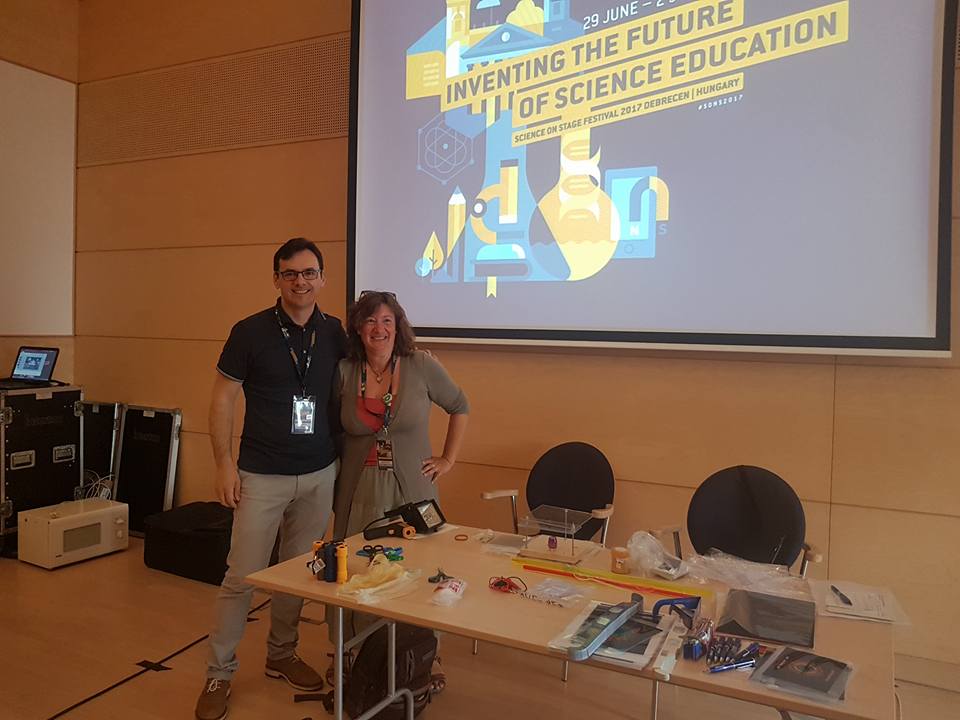 Teachers Annamaria Lisotti and Rui Baptista receive the Best STEM Teacher Award for the Joint Project category at SonS 2017.